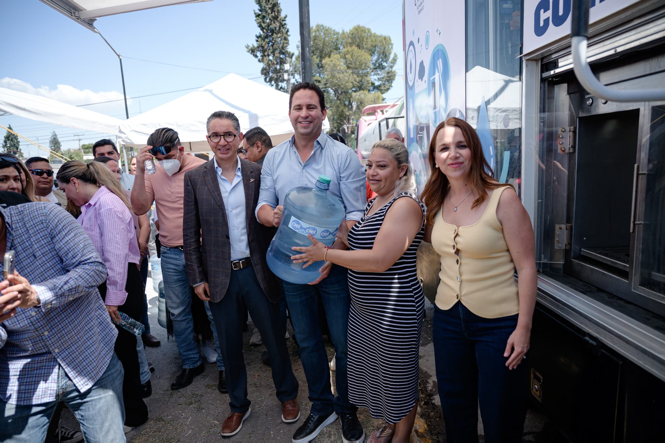 En representación del gobernador Manolo Jiménez Salinas, la secretaria de Vinculación Ciudadana, Proyectos de Innovación Social e Inversión Público Productiva, María Bárbara Cepeda Boehringer, recordó que trabajando en equipo, entre sociedad civil, iniciativa privada y gobierno se logran grandes resultados y prueba de ello es este camión potabilizador que a partir de hoy y hasta el próximo viernes 10 de julio, recorrerá 21 colonias de Saltillo llevando el vital líquido de manera gratuita y en dos turnos, matutino de 10:00 a 15:00 horas y vespertino, de 15:00 a 20:00 horas.